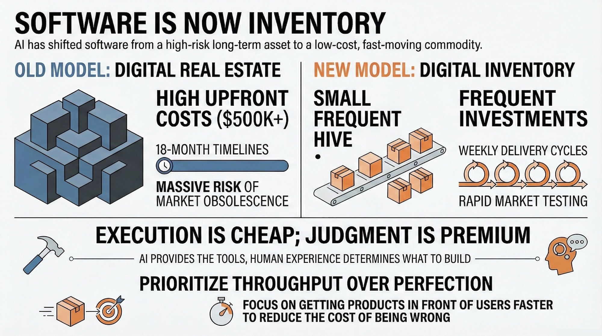 For anyone evaluating a digital investment, the question is no longer "can we afford to build this?" It is "how fast can we get this in front of real users, and what will we do with what we learn?"